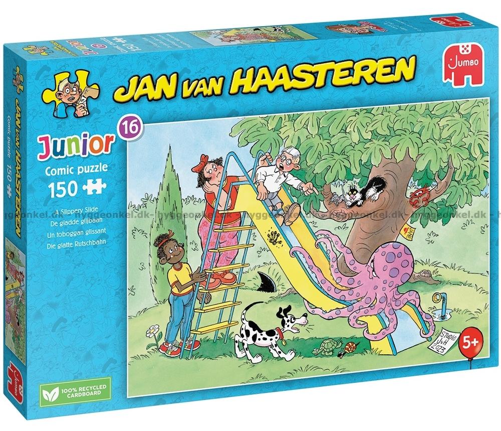 - Motivet rekommenderas från 5 år. Det är en del av Jan van Haasteren Junior-serien, som är en serie pussel med humoristiska motiv
