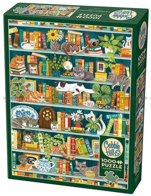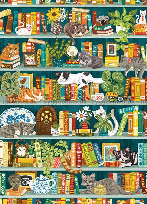 - Det finns många saker för katterna att utforska i denna bokhylla