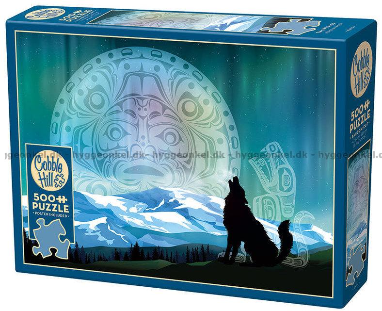 - Vargen ylar mot himlen och det vackra mytiska väsendet