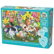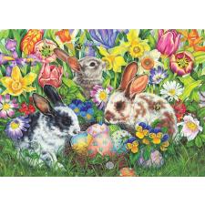 - De söta små hararna har hittat korgen med påskägg bland påskliljor och tulpaner