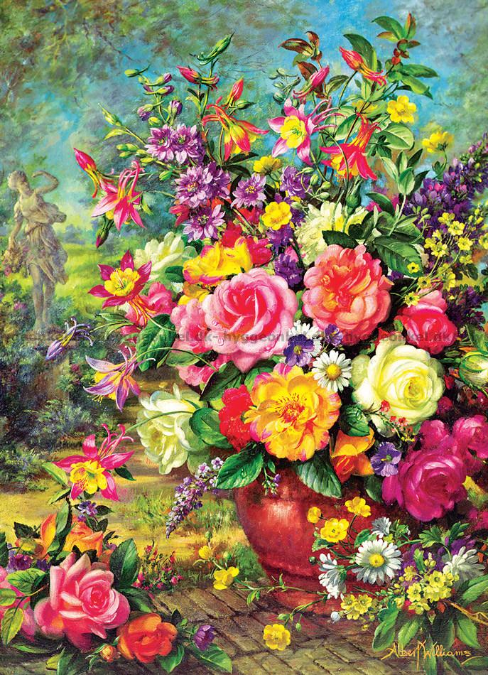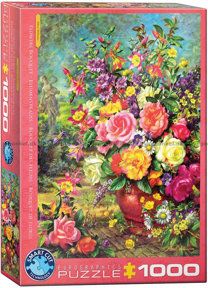 - Överdådig blombukett med stora, vackra rosor och andra färgstarka blommor