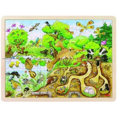 - Detta pussel är i trä. Ramen runt motivet ger många barn en bra trygghet och visshet om hur stort motivet är. Bitarna är 0,5 cm tjocka