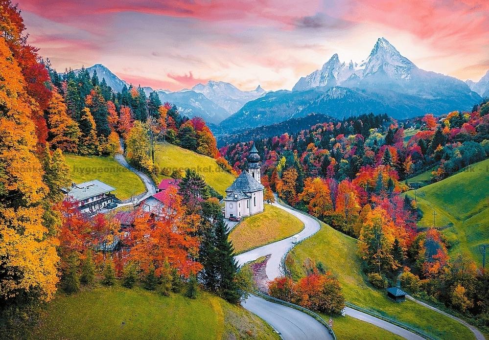 - Idyllisk kyrka vid foten av den tyska sidan av Alperna