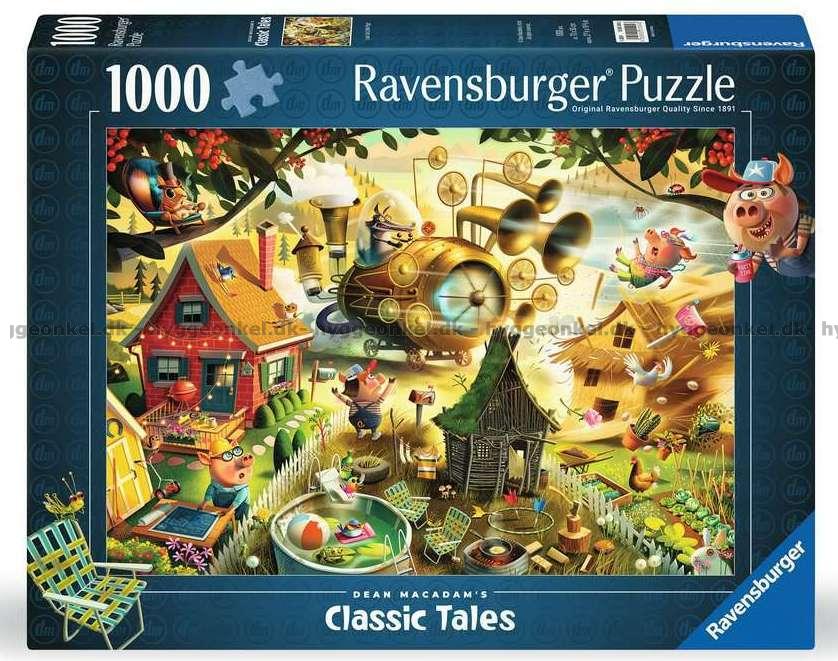 - De tre små grisarna måste akta sig för den här vargen, som blåser så att husen rasar omkull