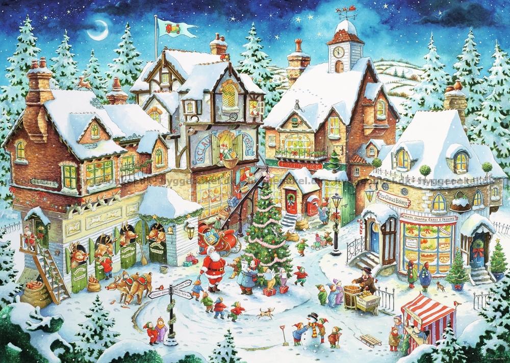 - På stadens torg kan man träffa jultomten vid den pyntade julgranen. Roy Trower har ritat motivet