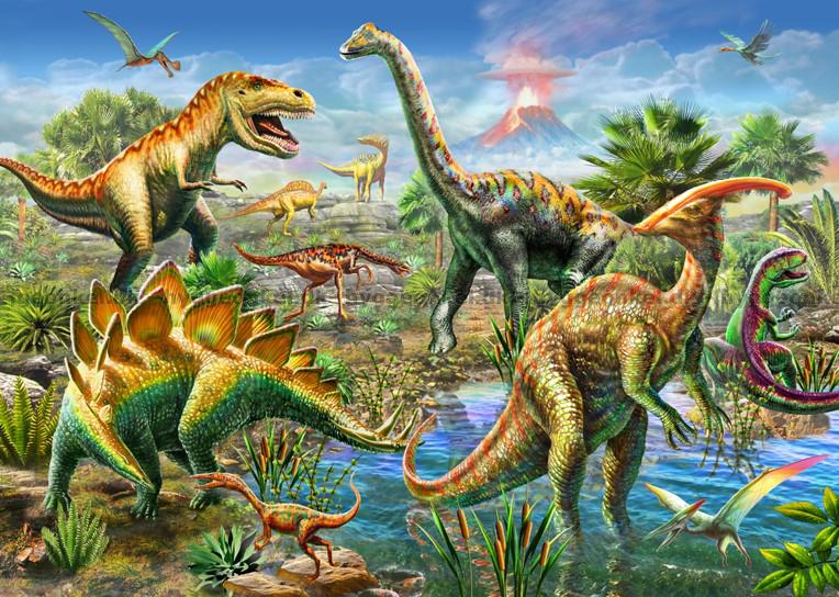 - Här kan du möta många olika dinosaurier. Motivet är ritat av Adrian Chesterman