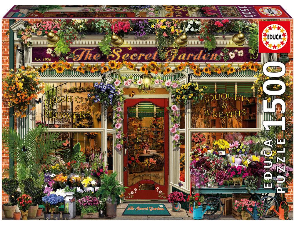 - Själva butikens fasad är rikt dekorerad med blommor i många färger. Garry Walton har ritat motivet