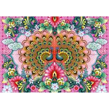 - Snyggt, färgstarkt mönster med vackra bengaliska påfåglar