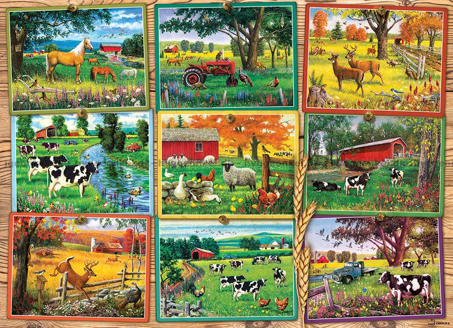 - Mysiga vykort som var och en skildrar livet på landet med färgstarka och idylliska scener