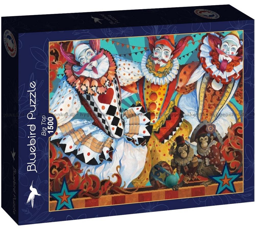 - Motivet visar en livlig och färgstark cirkusscen med tre clowner i centrum, omgivna av två små apor. Det är en festlig och energisk atmosfär som fångar uppmärksamheten.