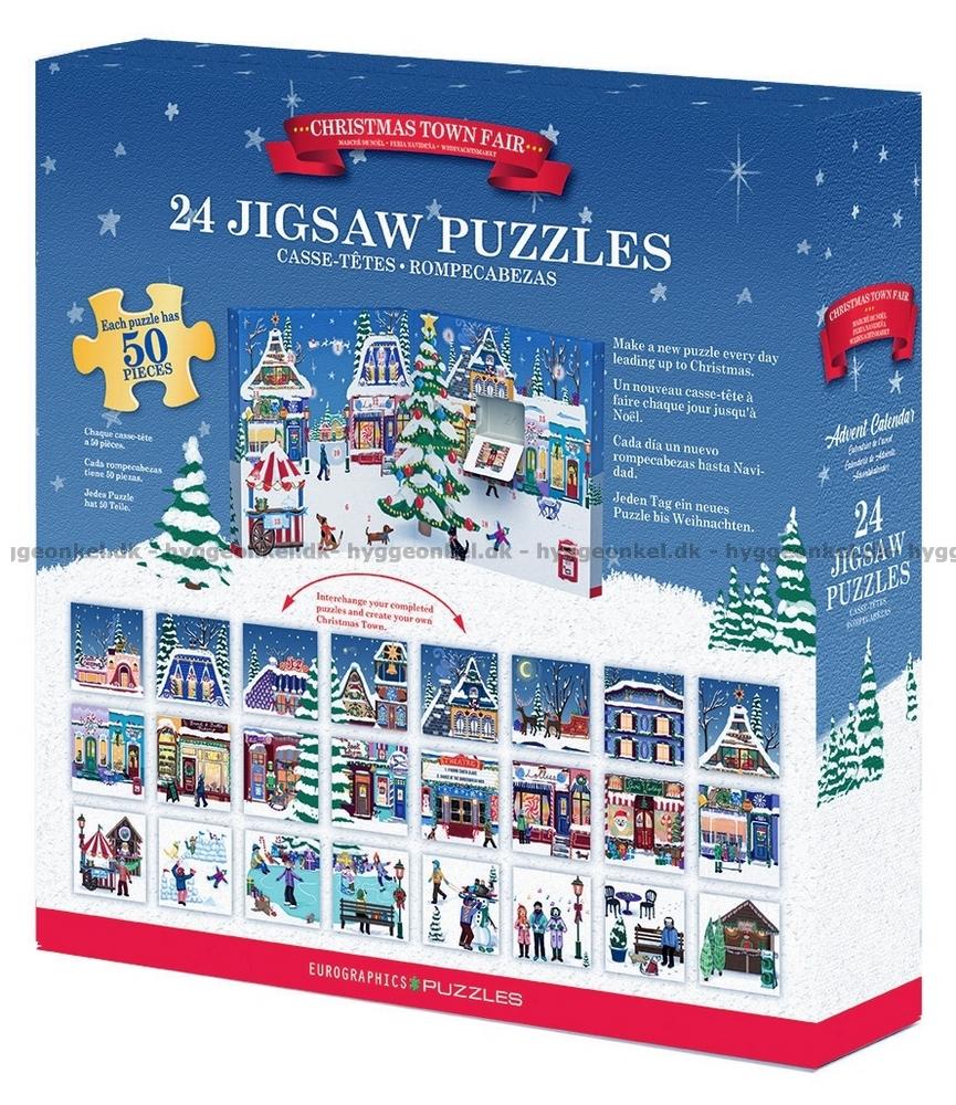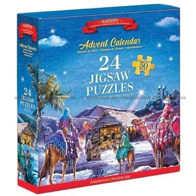 - Öppna en ny lucka varje dag – 24 luckor totalt. Varje motiv består av 50 bitar – totalt 1200 bitar. Det handlar om 24 små pussel – de kan inte sättas ihop till ett stort