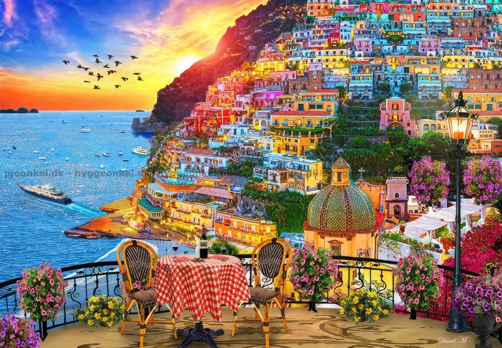 - Solens sista strålar ger ett vackert sken över den färgglada staden