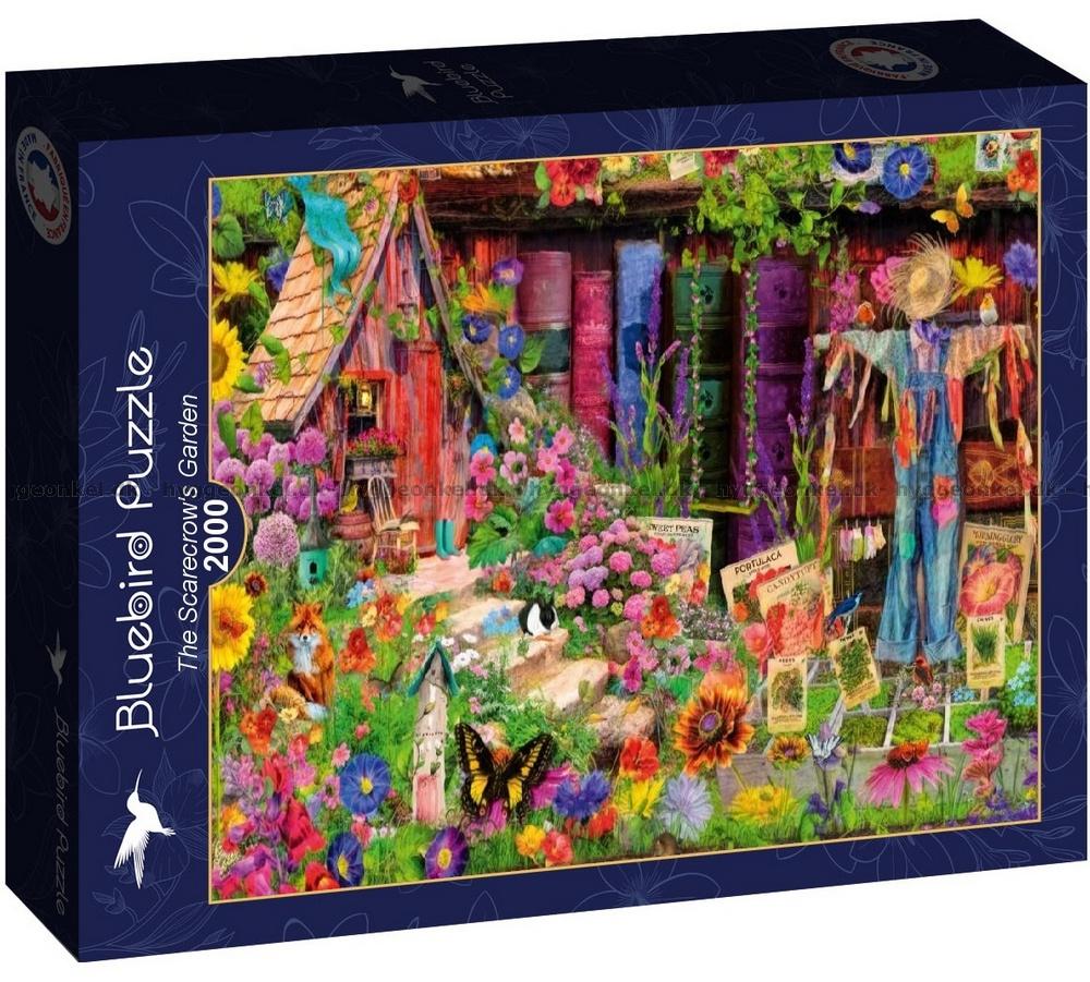 - I den fina trädgården håller fågelskrämman fåglarna borta