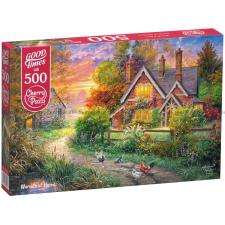 - Ljuset är tänt i det mysiga huset omgivet av blommor