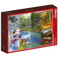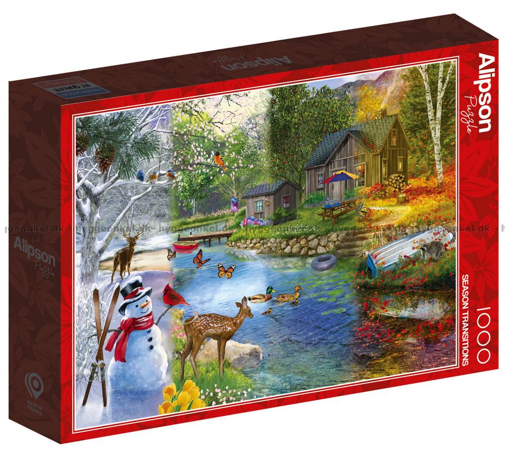 - Bilden visar en vacker övergång mellan de fyra årstiderna vid floden