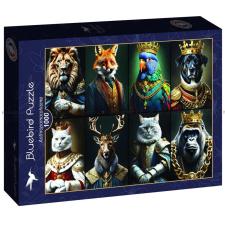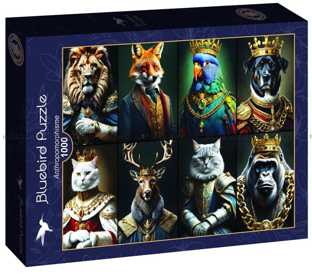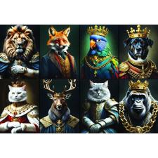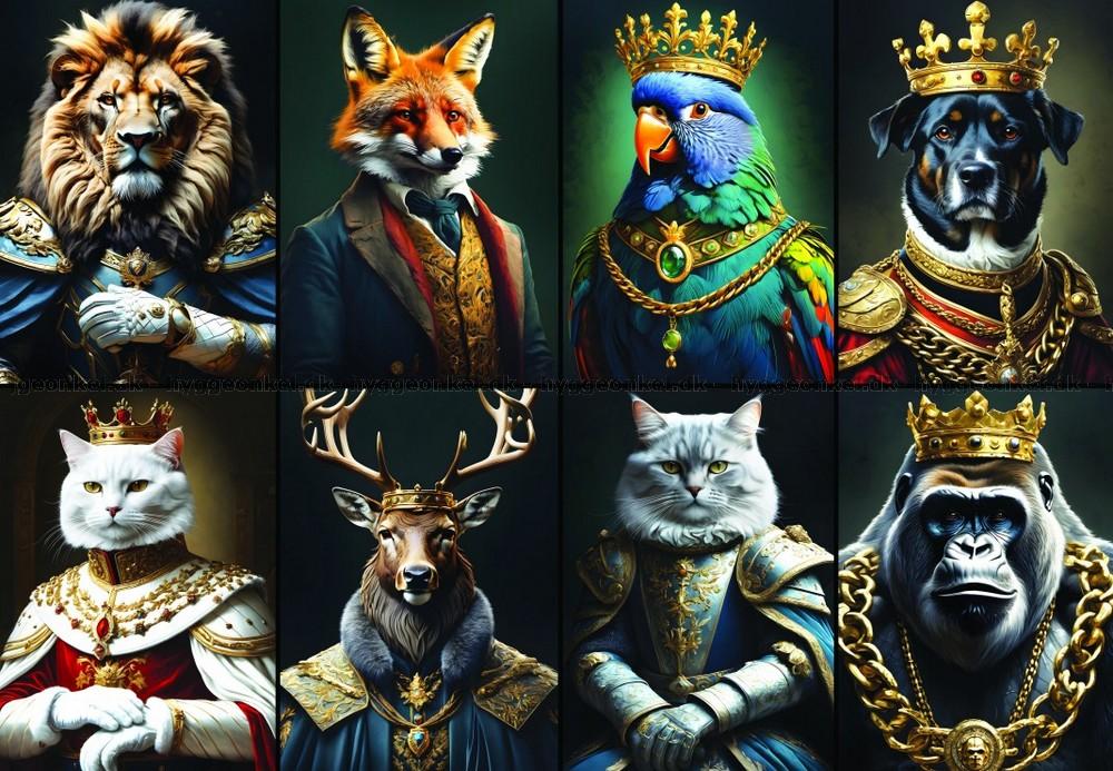 - Motivet visar en rad djur klädda i kungliga dräkter, var och en med en krona på huvudet