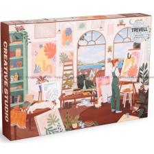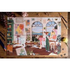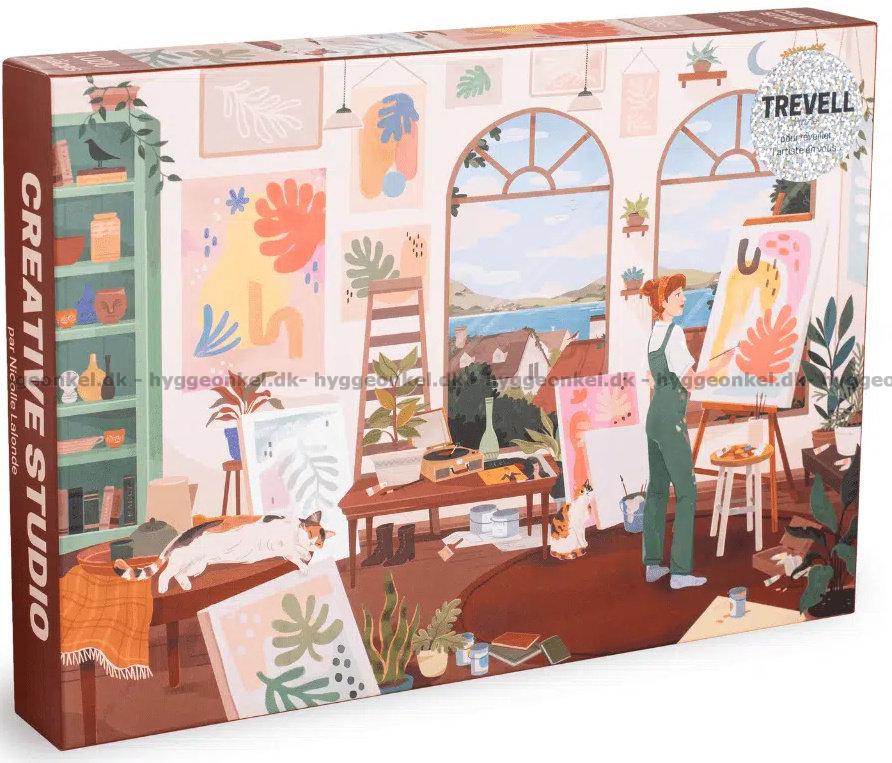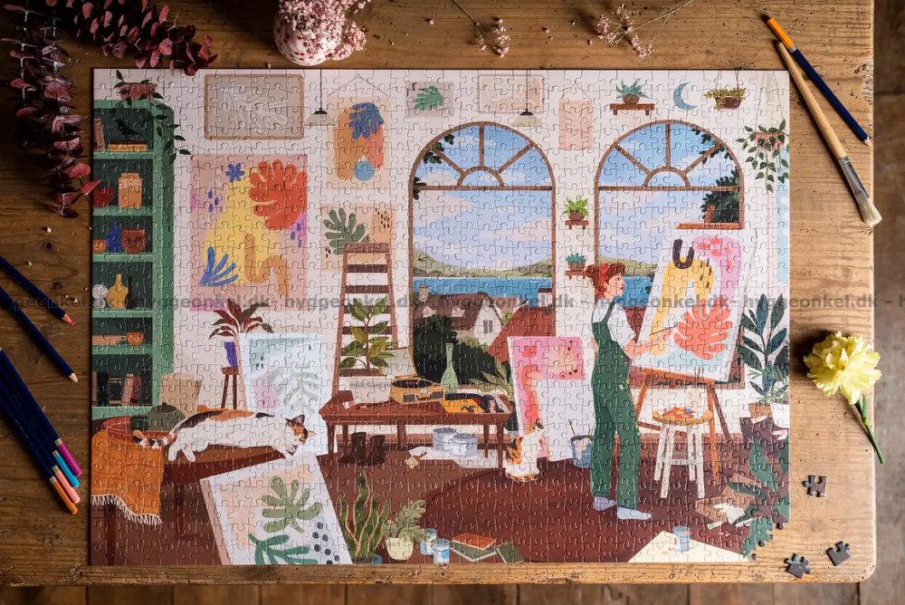- Konstnären håller på med ett av hennes färgstarka målningar i den mysiga ateljén
