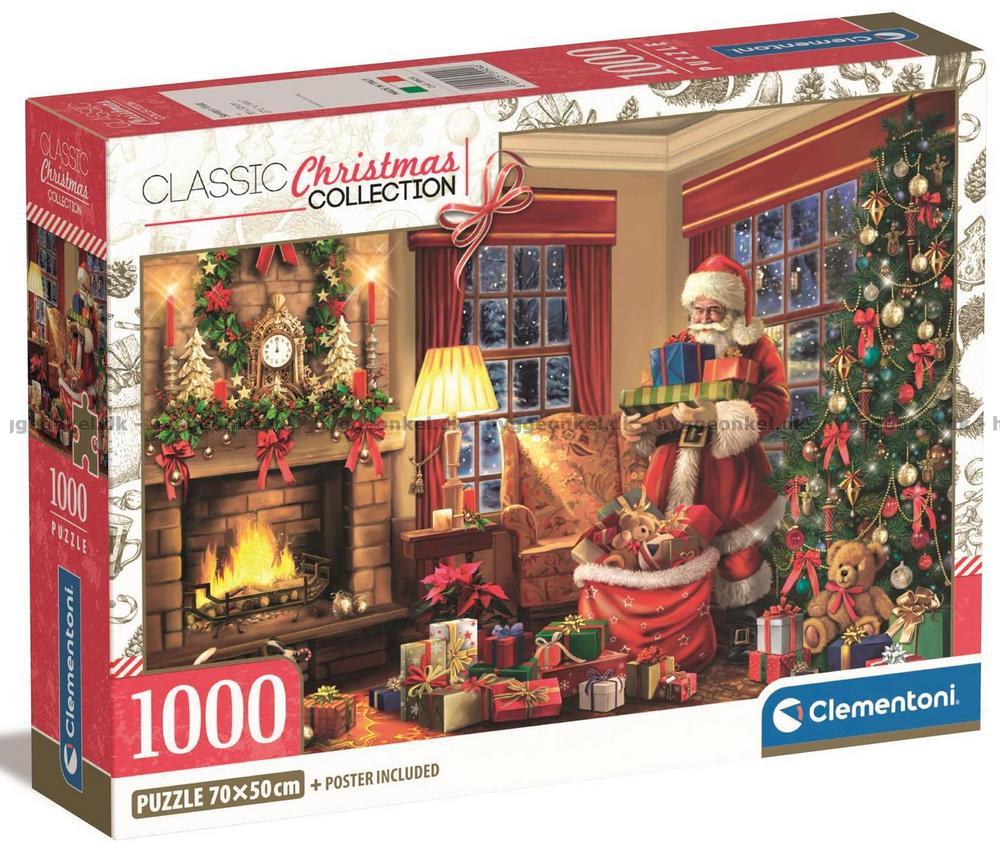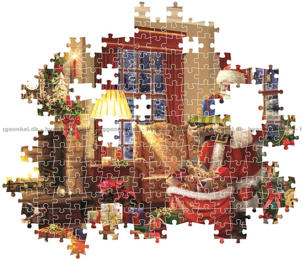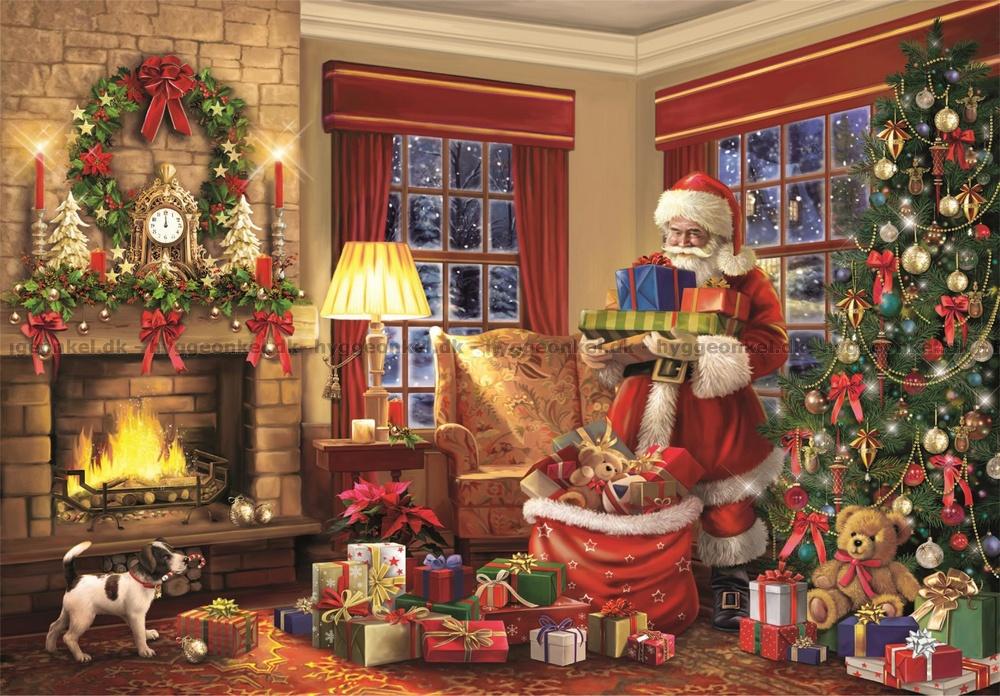 - De läggs framför öppna spisen i det julpyntade vardagsrummet