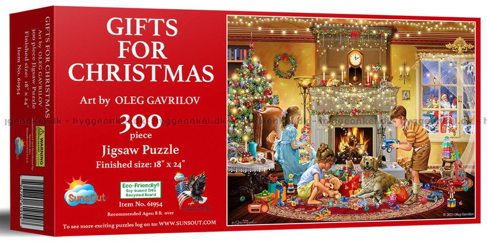 - Oleg Gavrilov har ritat motivet. Pusslet har större bitar. Detta julmotiv passar bra för vuxna som vill lägga pussel med färre bitar.