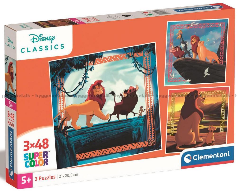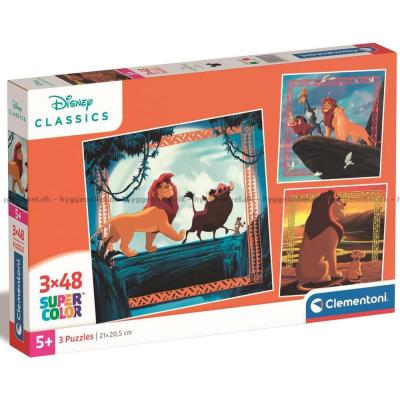 - 3 olika kvadratiska pussel med vardera 48 bitar samlade i en ask. Här är motiven från Disneys berättelse om Lejonkungen