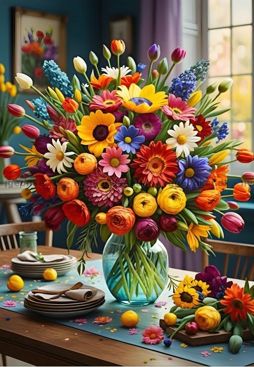 - Bukett fylld med några av trädgårdens vackra och färgglada blommor