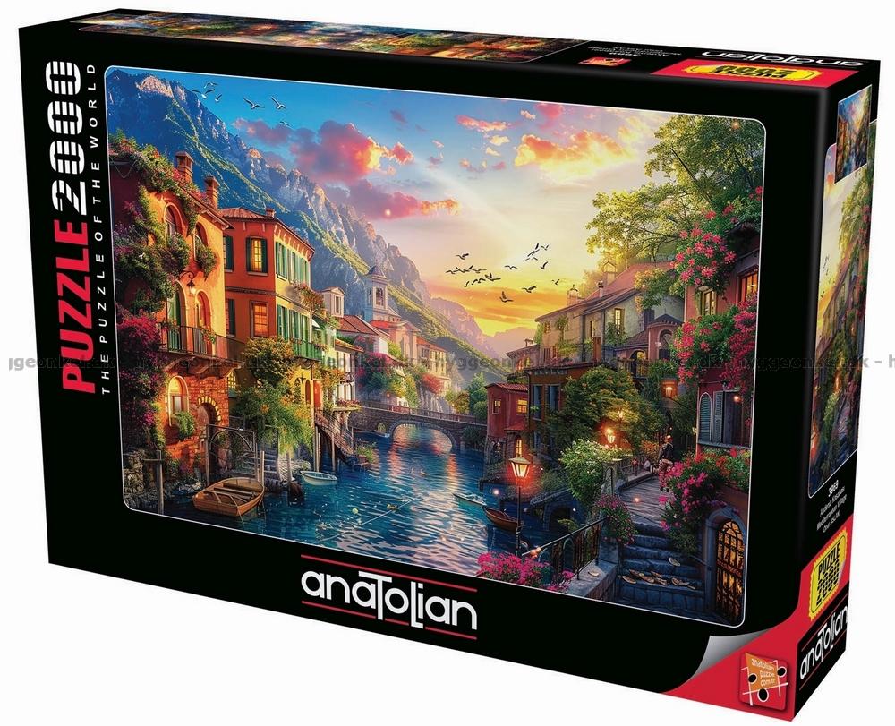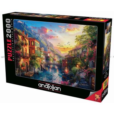 - I bakgrunden håller solen på att gå ner bakom bergen