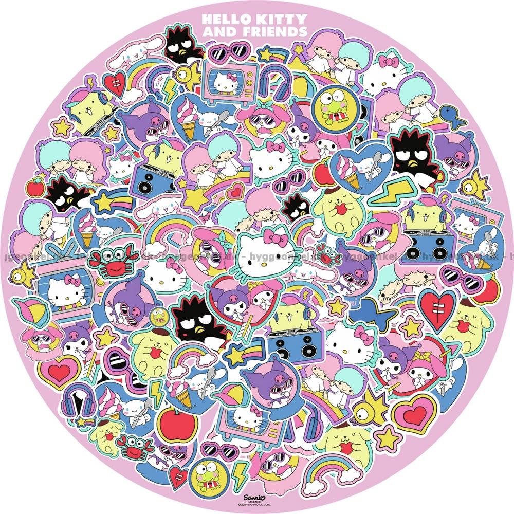 - Motivet är ett sött och färgglatt collage fyllt med Hello Kitty och hennes vänner, regnbågar, hjärtan och roliga detaljer som sprider glädje till både barn och vuxna fans.