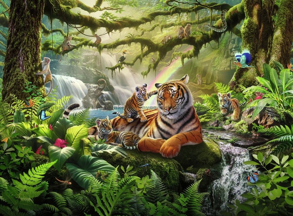 - Tigerfamiljen har hittat en fridfull plats vid vattenfallet