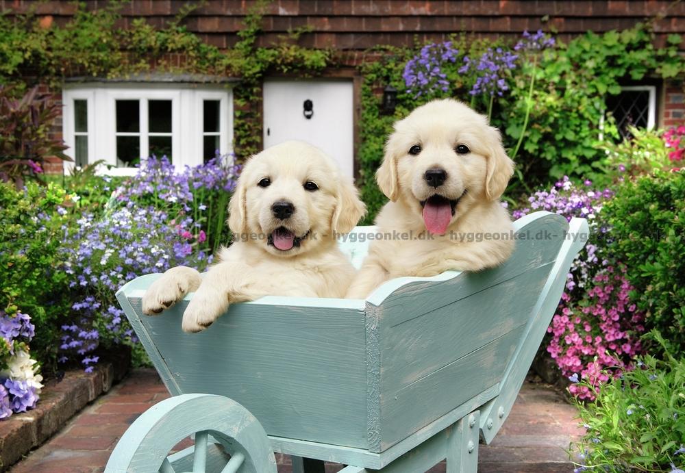 - De två härliga hundarna redo för en åktur i skottkärran