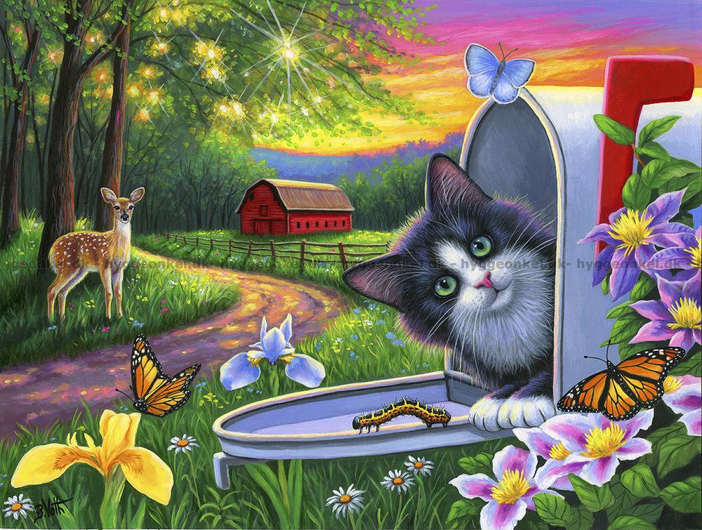 - Den nyfikna katten kan inte alls vänta på att posten ska komma!