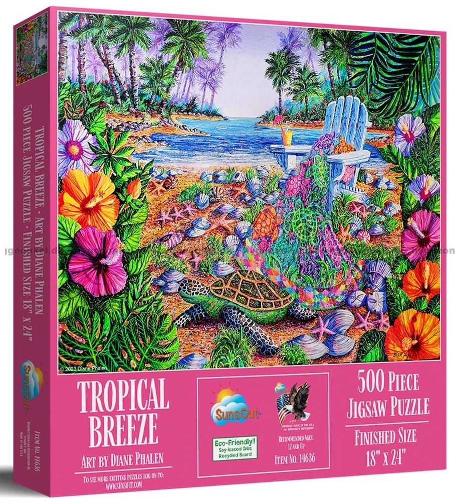 Detta pussel kommer från SunsOut. Detta märke gör både pussel där bitarna är vanliga till formen och pussel med Smartcut/asymmetrisk form.