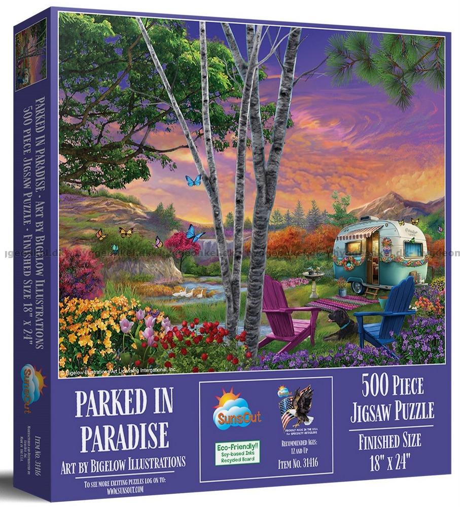 Detta pussel kommer från SunsOut. Detta märke gör både pussel där bitarna är vanliga till formen och pussel med Smartcut/asymmetrisk form.