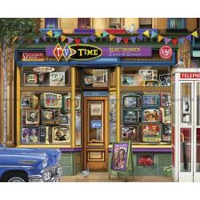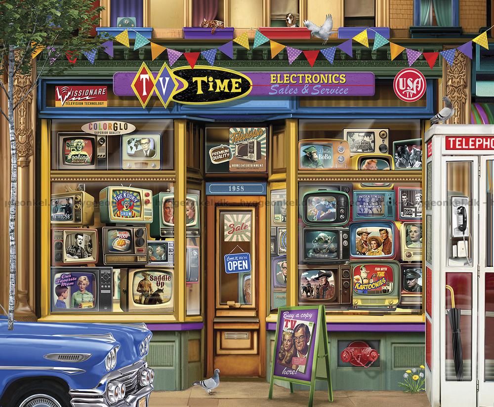 - Nostalgisk TV-butik fylld med gamla TV-apparater