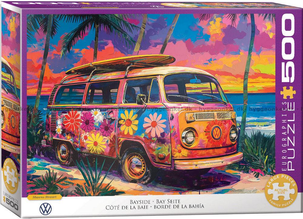 - Shawna Stewart har ritat motivet. Detta pussel har större bitar. Det betyder att när motivet är lagt, så är det lika stort som ett vanligt 1000-bitars pussel