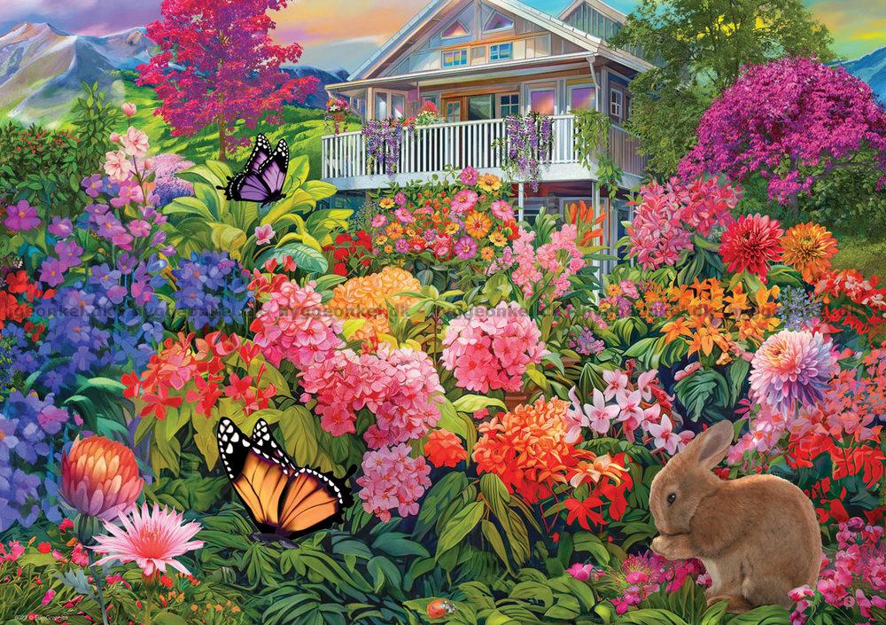 - Kaninens trivs i trädgården fylld med vackra blommor