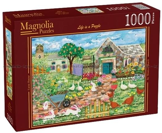 - Motivet visar en färgstark och livlig innergård fylld med djur och blommor. Det är en idyllisk scen som utstrålar fred och lugn.