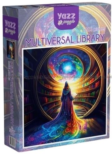 - I den stora bibliotekssalen står en person med en färgglad mantel