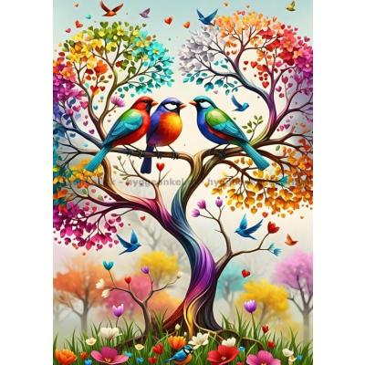 - Trädet är fyllt med små hjärtformade blad i regnbågens alla färger