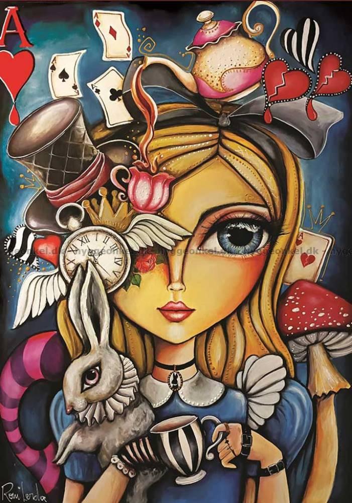 - Kring Alice svävar element från historien – bland annat spelkort och ett fickur