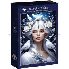 - Gudinnan med det vita håret omgiven av fåglar och blommor