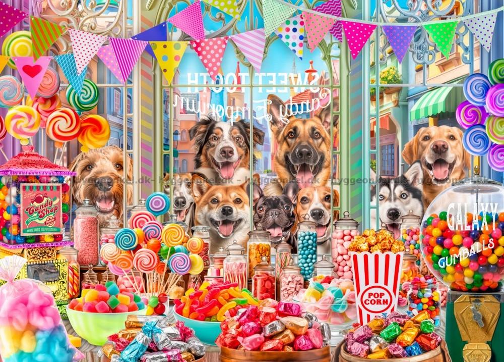 - Från gatan kan hundarna betrakta de många läckra sakerna i godisbutiken