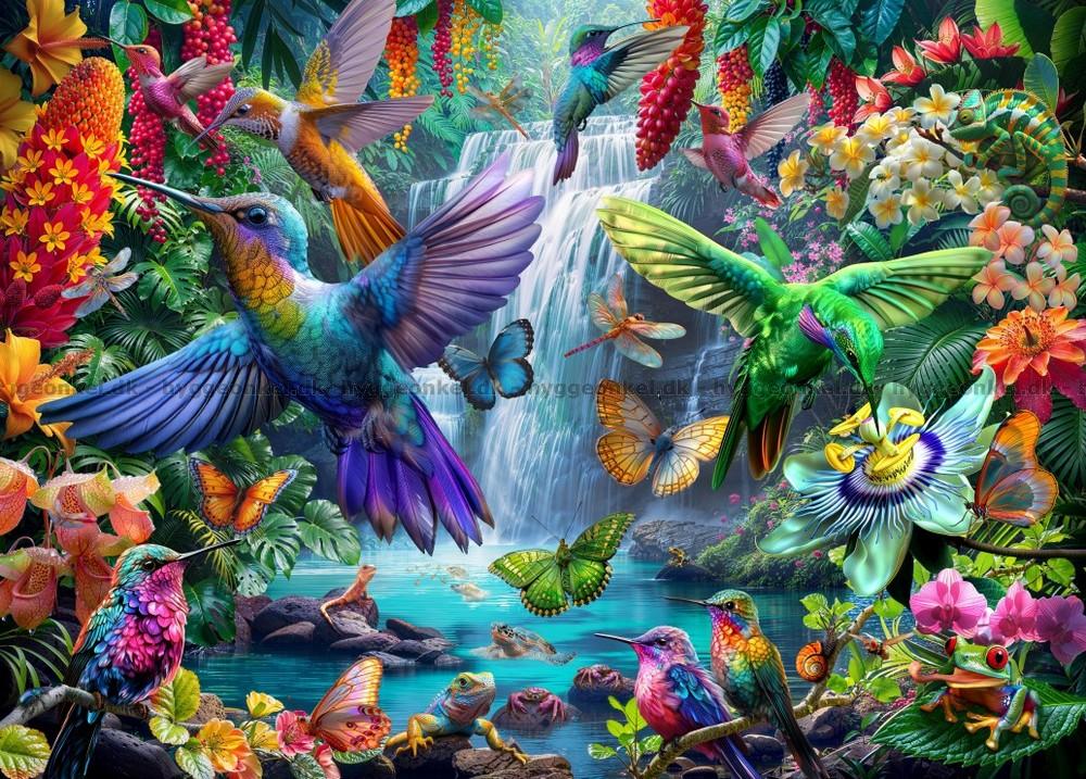 - Framför det stora vattenfallet utför kolibrierna en vacker dans