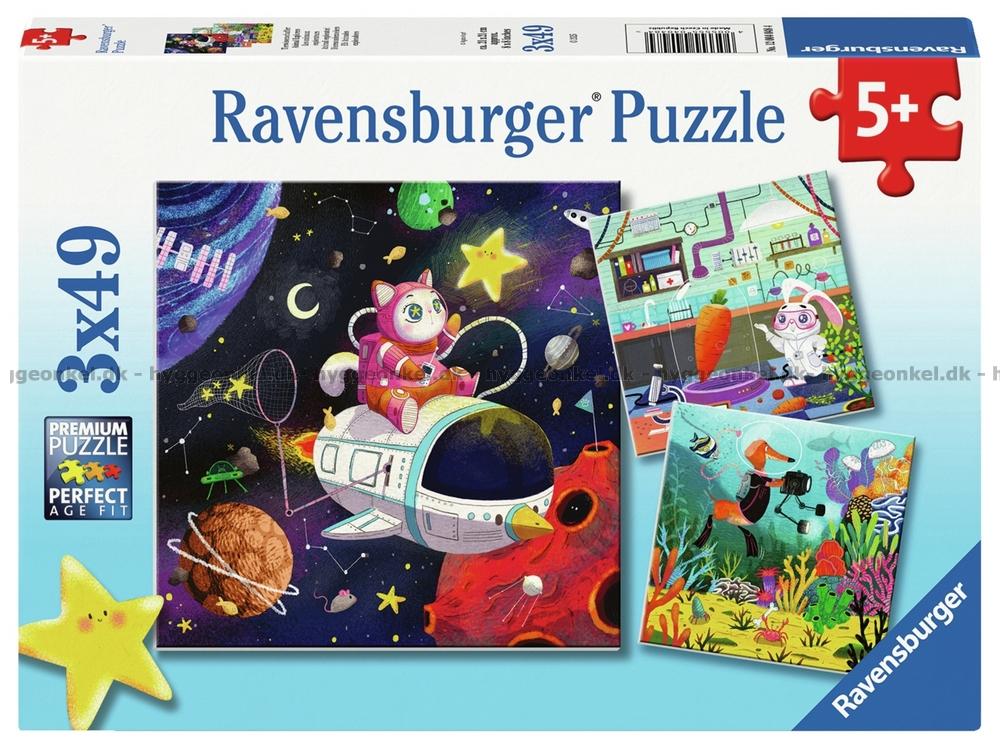 - Tre olika motiv med djur som forskar och experimenterar