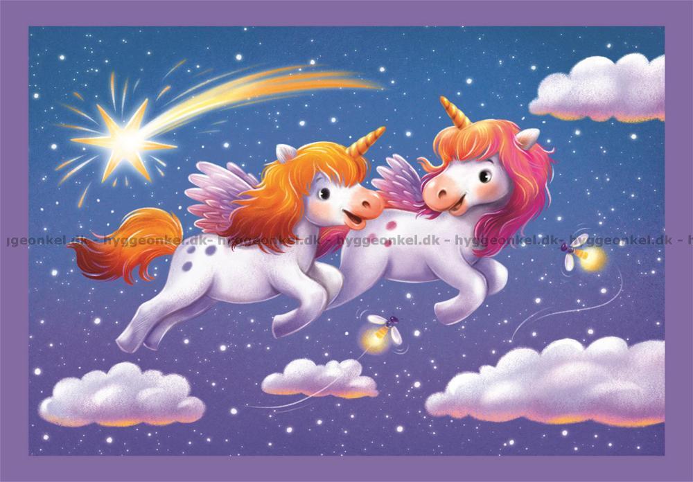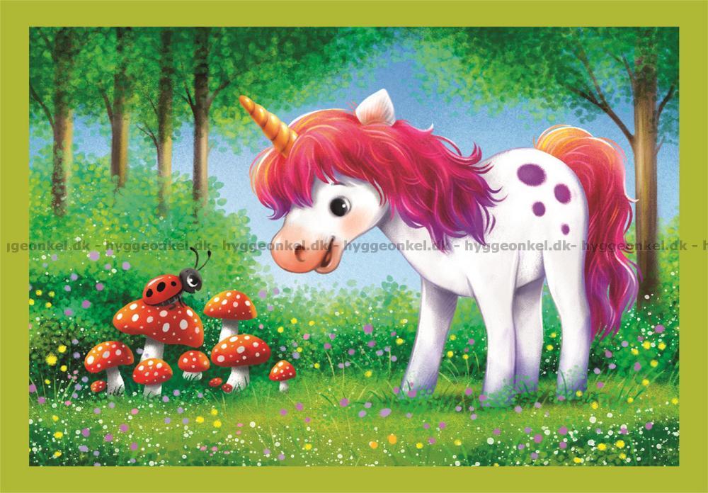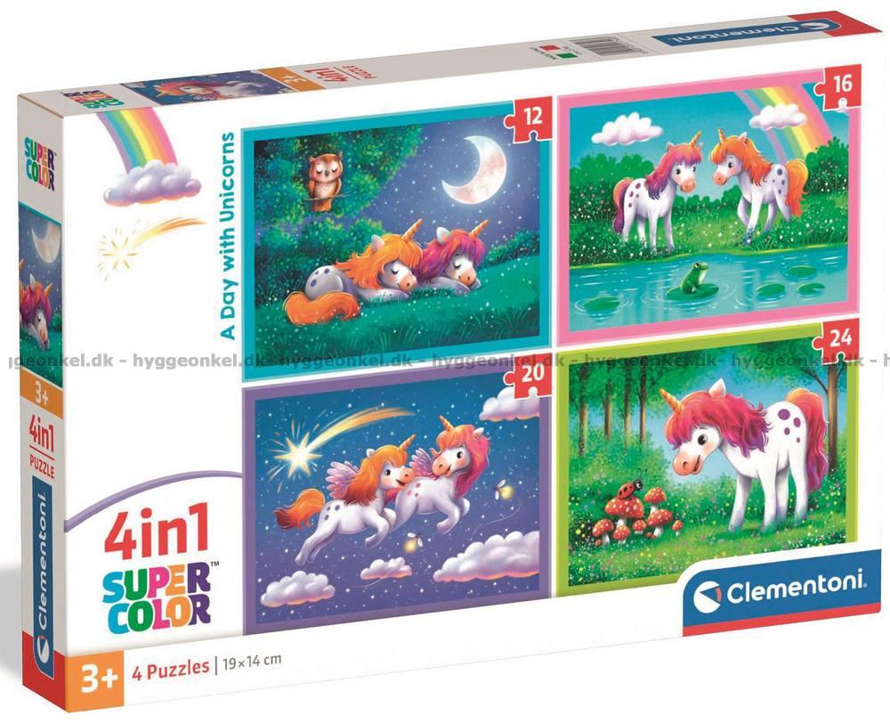 - Här får du 4 pussel samlade i en ask med fina enhörningar