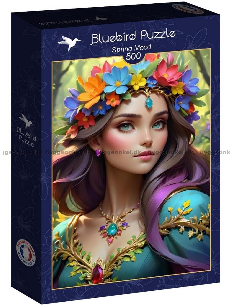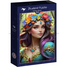 - Kvinnan bär en färgglad blomsterkrans på huvudet