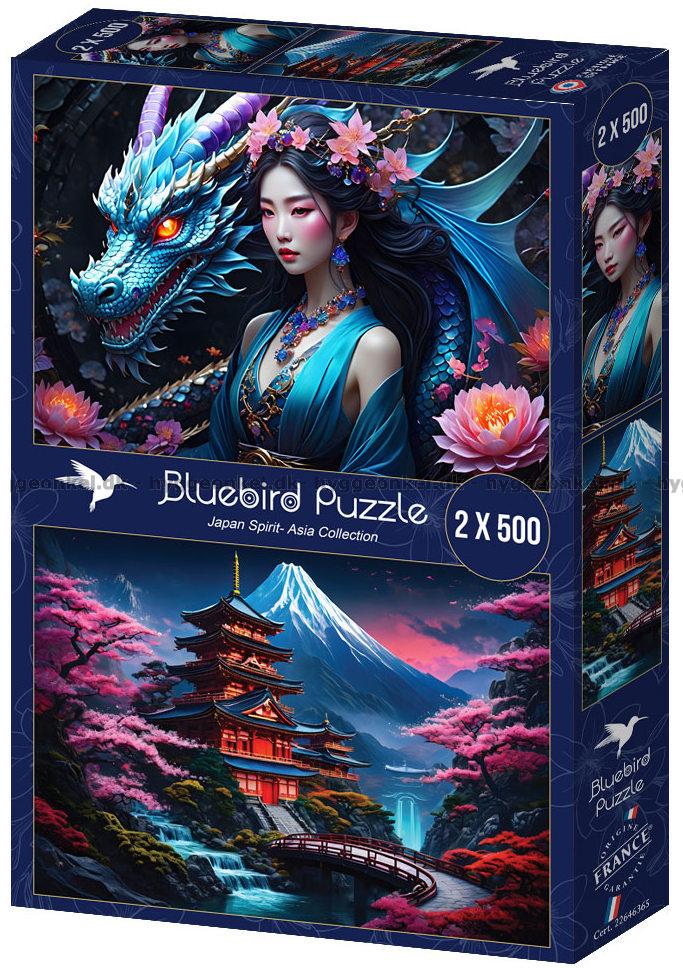 - Asken innehåller 2 olika motiv med japanskt tema – varje pussel har 500 bitar