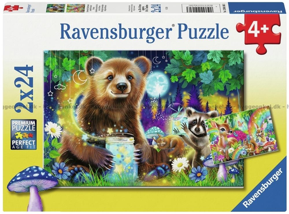 - I denna ask får du hela 2 pussel med skogens djur. Båda motiven rekommenderas från 4 år