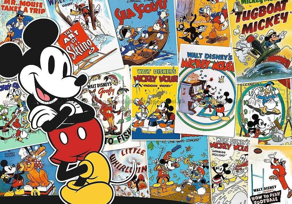 - Färgglad collage med klassiska serietidningsomslag och affischer
