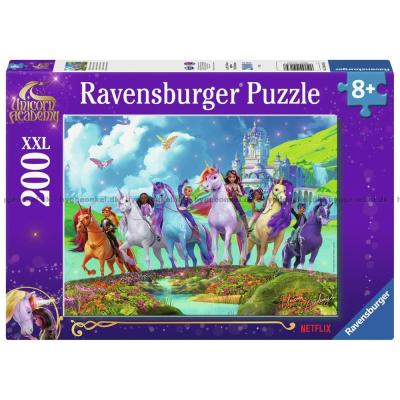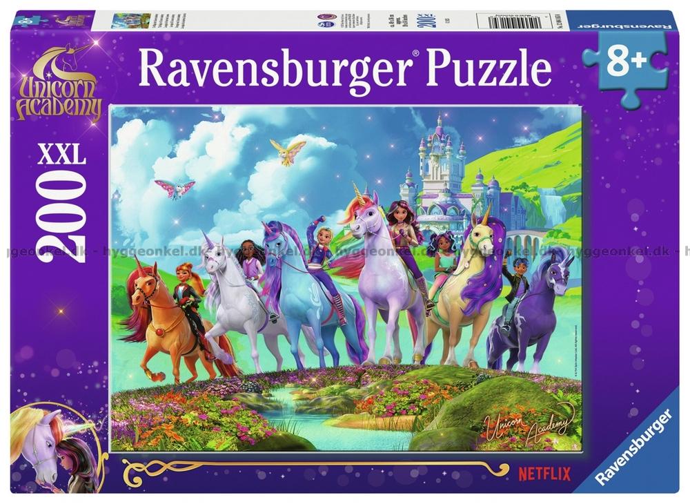 - Flickan sitter på den strålande enhörningen. Motivet är från Unicorn Academy, som är en Netflix-serie.