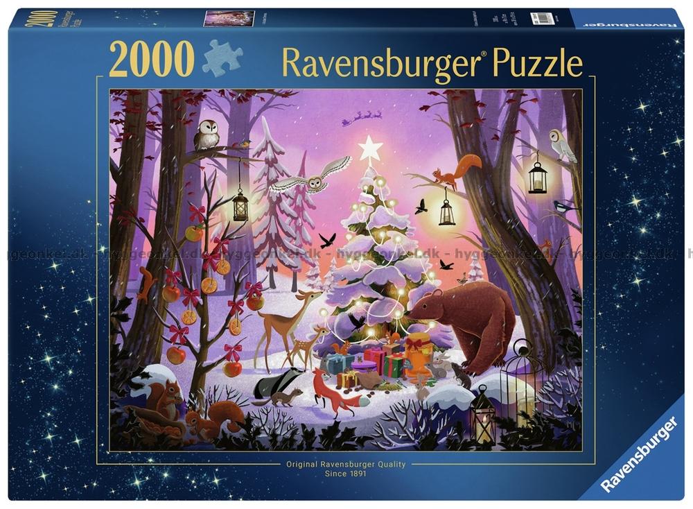 - Magisk julscen i skogen fylld med djur, snö och varma julbelysningar